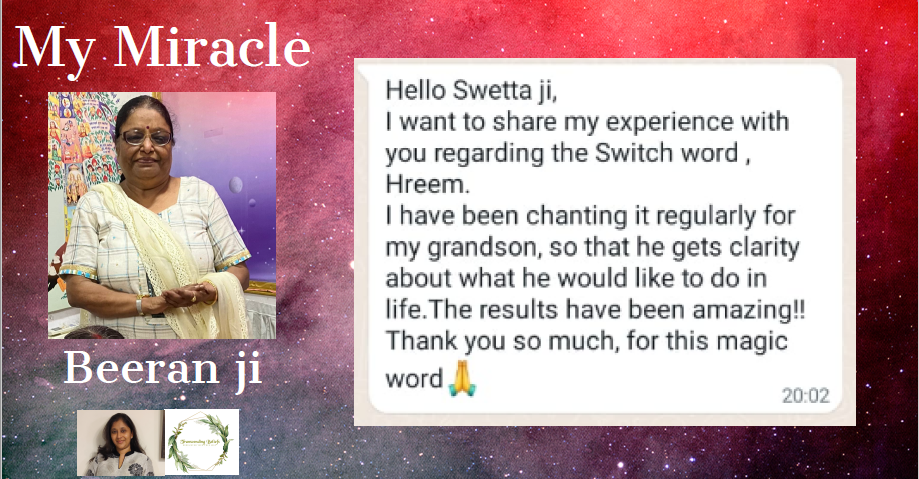 I am Dr. Amee Shah from Mumbai. I did the Vedic Switchwords program with Swetta Agarrwal. She is a dedicated teacher who imparts knoweldge with passion and humor, patiently making sure all participants understand all the concepts fully.. I found vedic Switchwords simple to learn and they are a valuabel tool for healers to hel clients, as well as for lay people to use in their daily lives.